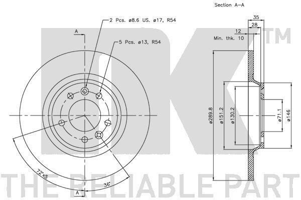 ∅ отверстия [мм]: 13