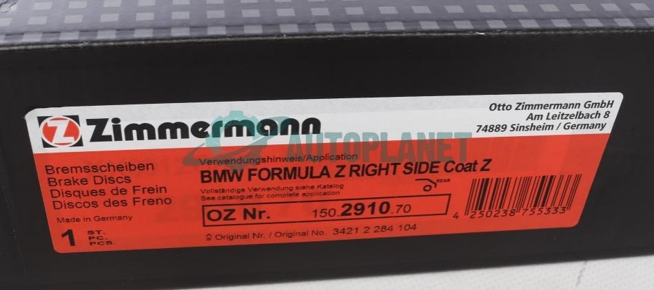 Диск тормозной ZIMMERMANN 150.2910.70